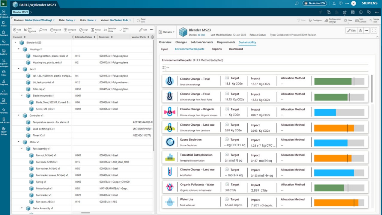 지멘스는 제품 수명주기 관리 소프트웨어인 Teamcenter를 확장해 AI 기반 LCA 기능을 추가했다.